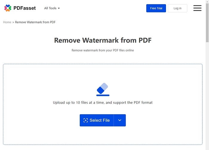 PDFasset PDFasset is a robust PDF processing tool that excels in removing watermarks. It allows users to upload, process, and download files quickly without compromising document quality. Additionally, PDFasset offers free trials and various PDF editing features, making it a versatile choice for users seeking comprehensive PDF solutions. Visit Remove PDF watermark onPDFasset