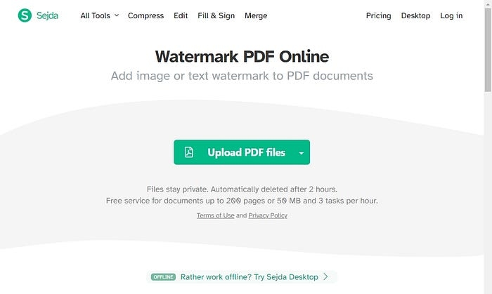 Sejda PDF Sejda PDF focuses on privacy, automatically deleting uploaded files after removing watermarks. In addition to watermark removal, Sejda provides tools for splitting, merging, and editing PDFs, making it a reliable solution for users who prioritize security and convenience. Visit Sejda PDF